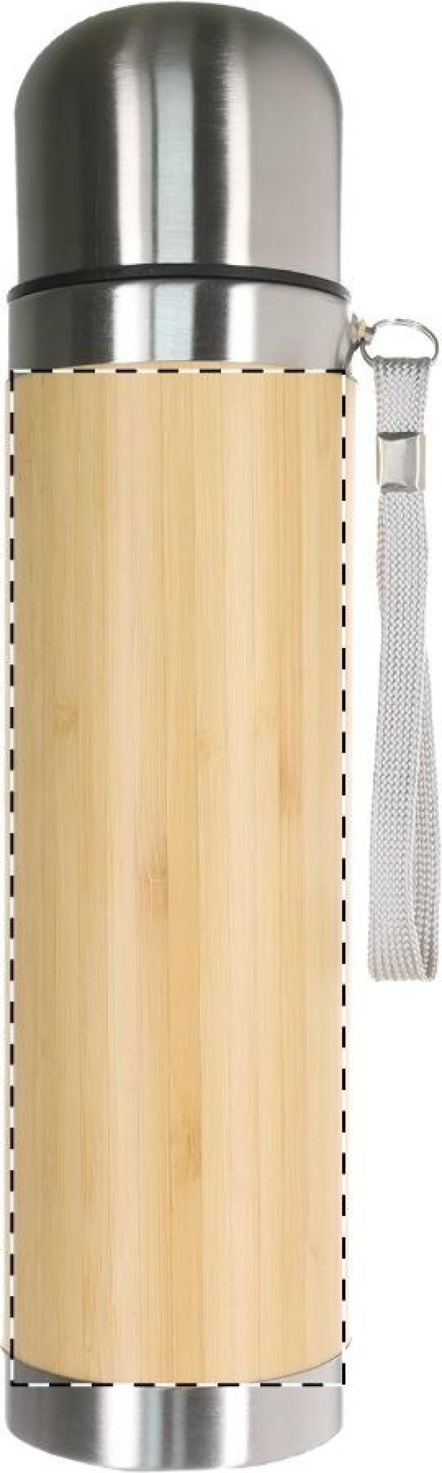 Termoska z nerez oceli s bambusovým povrchem a páskem, 420 ml.