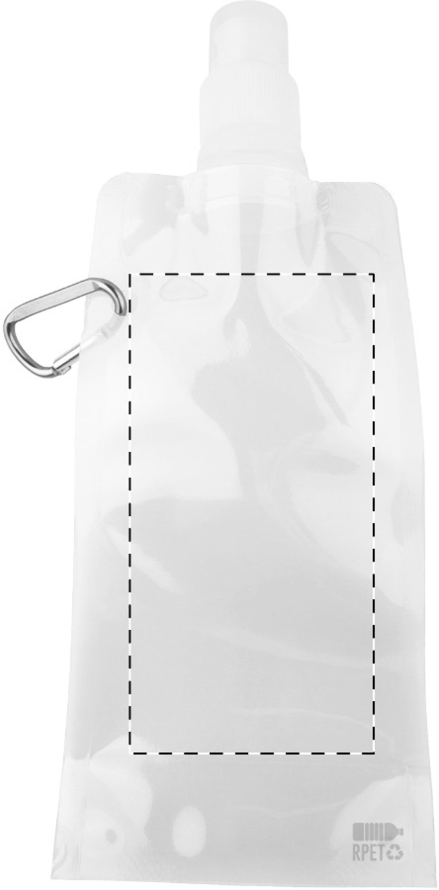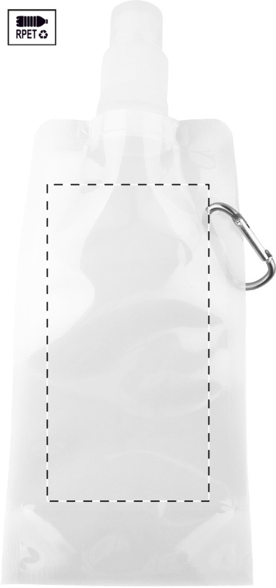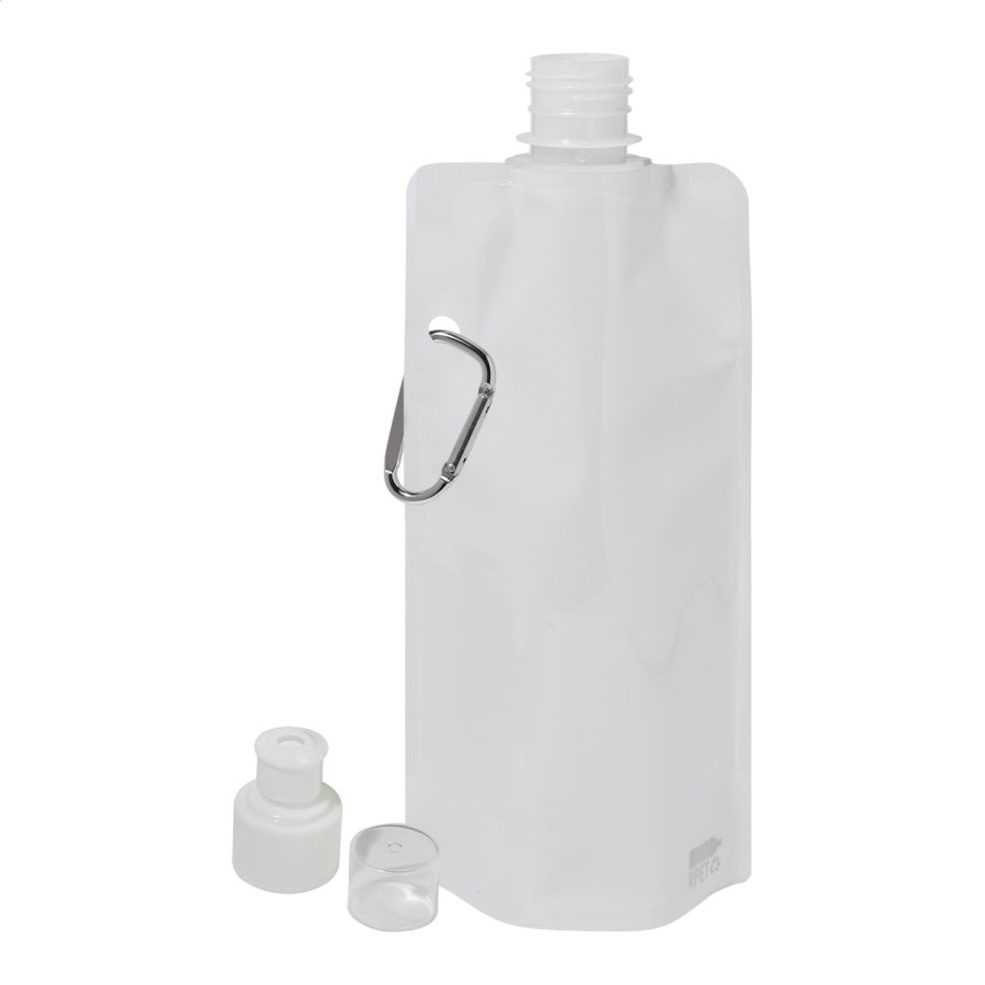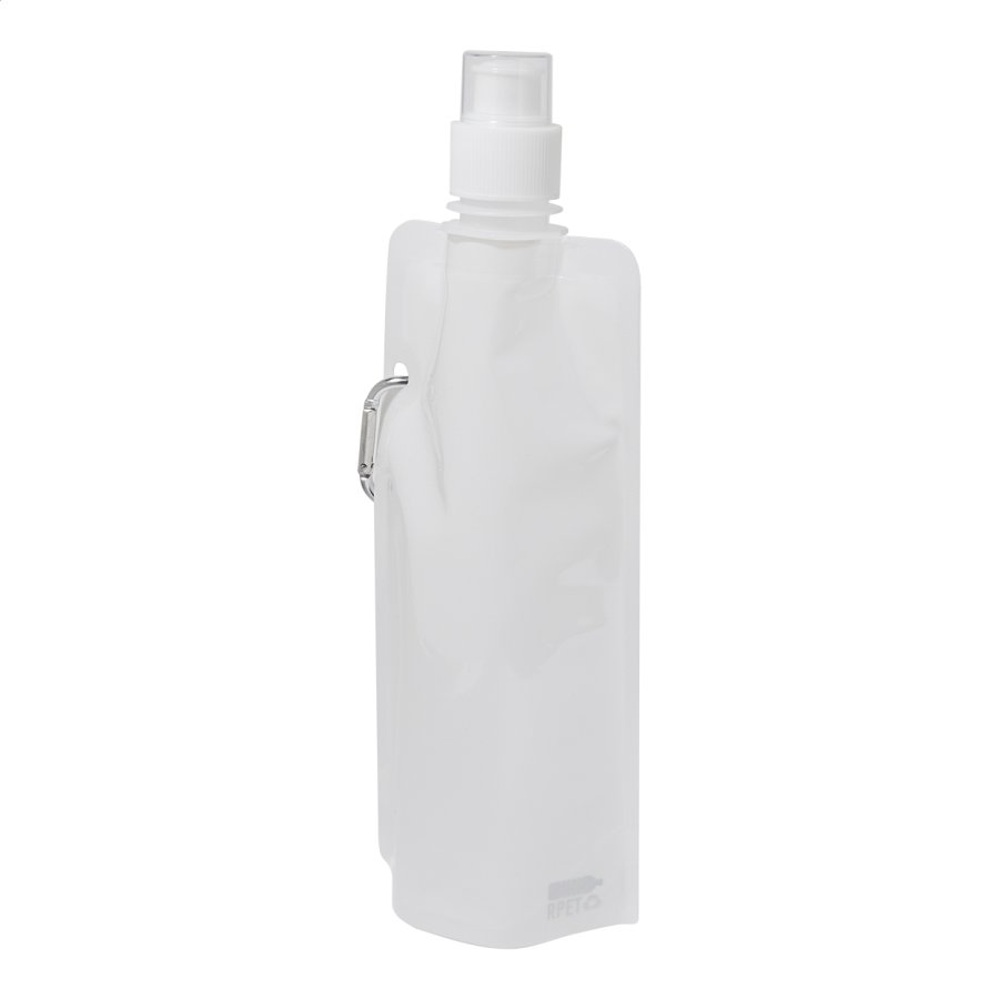 Skládací sportovní láhev z RPET s víčkem na pití a hliníkovou karabinou, 500 ml. Bez BPA. Nevhodná pro sycené nápoje.