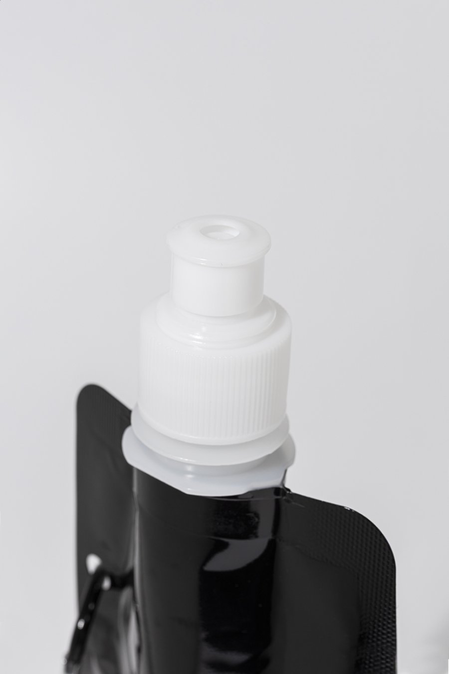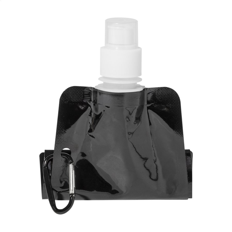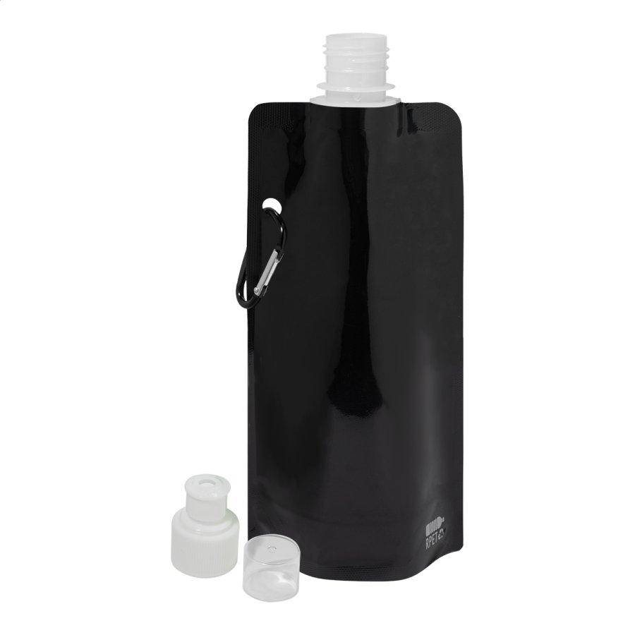 Skládací sportovní láhev z RPET s víčkem na pití a hliníkovou karabinou, 500 ml. Bez BPA. Nevhodná pro sycené nápoje.