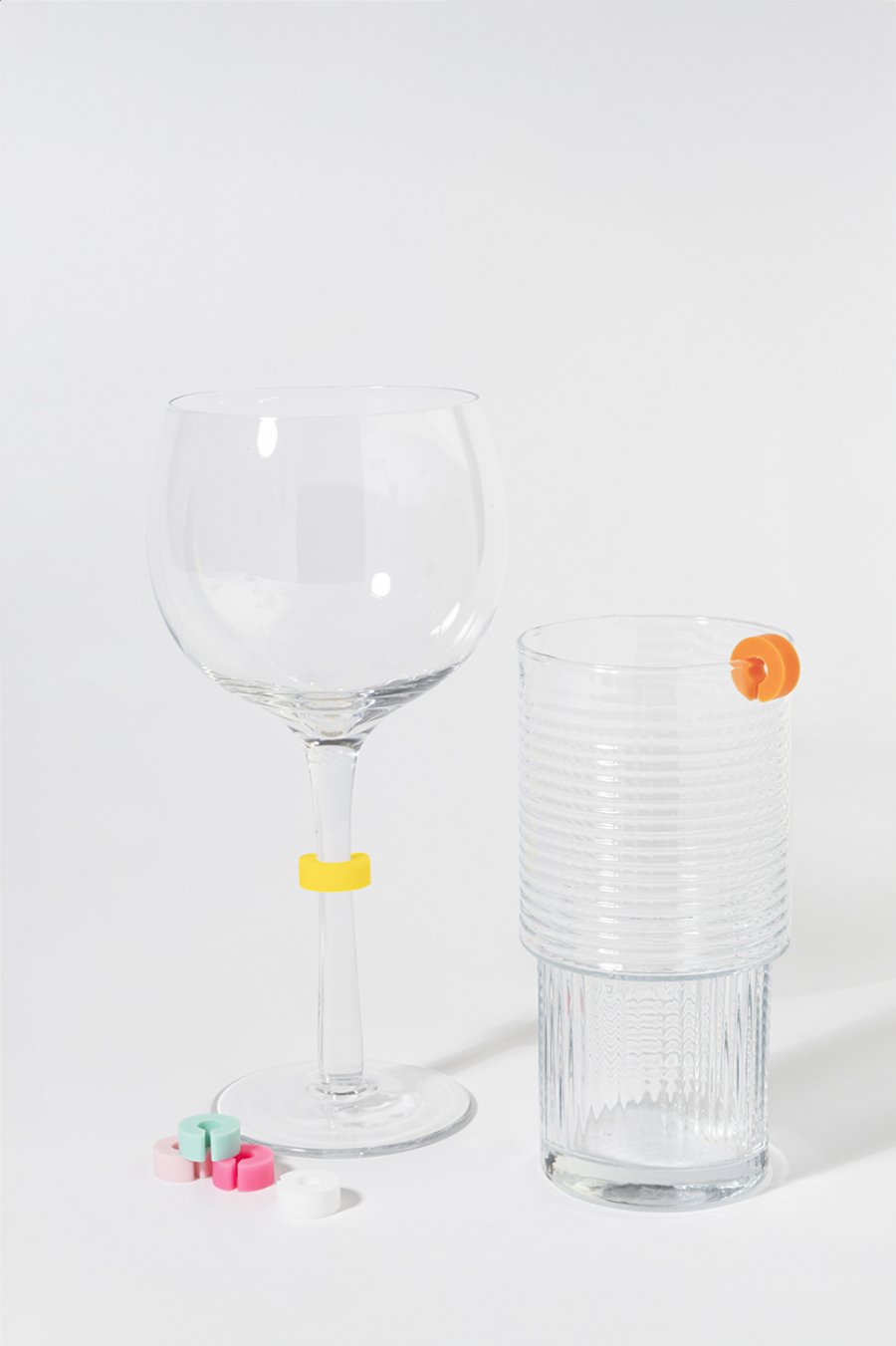 Barevná sada 12 silikonových korálků – označovačů sklenic – v úložné krabičce z recyklovaného PP