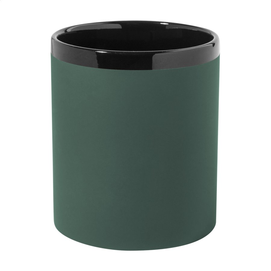 Keramický hrnek s měkkým pogumovaným povrchem a černým vnitřkem a okrajem, 300 ml. Se speciálním povrchem pro gravírování, gravírované logo ladí s barvou na vnitřní straně. V krabičce z kraftového papíru.