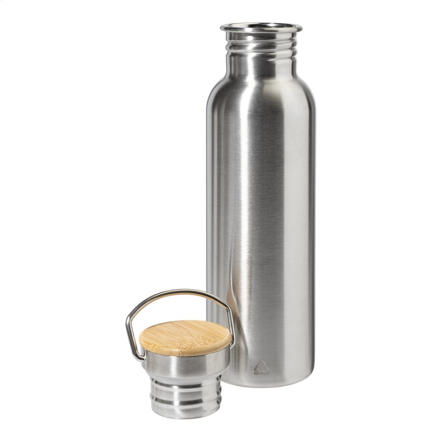 Láhev z recyklované nerezové oceli s bambusovým víčkem, 750 ml.