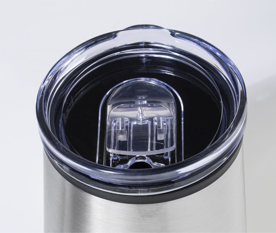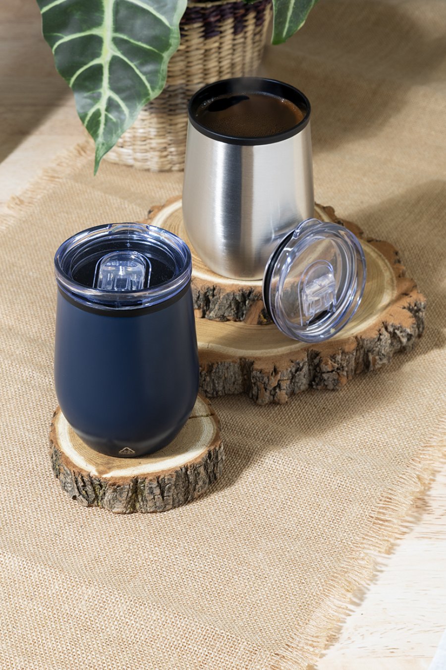 Dvoustěnný termo hrnek z recyklované nerezové oceli s vnitřní stranou z PP a víčkem z PS. 350 ml.