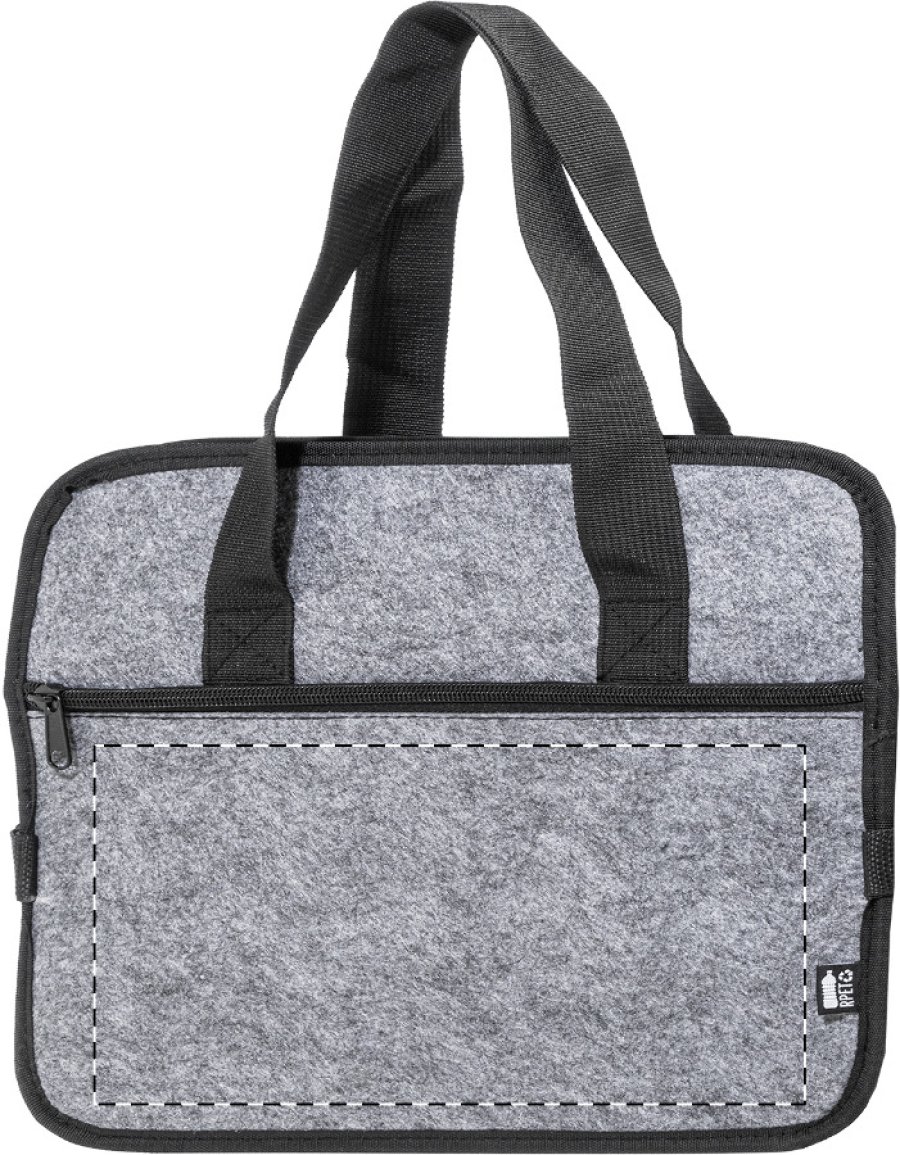 Skládací organizér do kufru auta z plsti RPET s přední kapsou na zip, dlouhými uchy a bočními přezkami pro pohodlné uložení. Obsahuje jednu otevřenou úložnou přihrádku a jednu chladicí přihrádku na zip s hliníkovým polstrováním. S výrazným štítkem RPET.