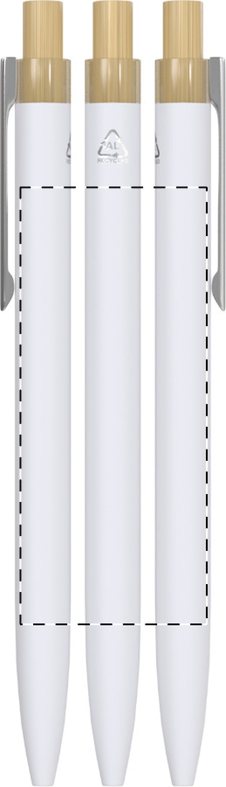 Kuličkové pero z recyklovaného hliníku s pogumovaným povrchem, bambusovým tlačítkem a chromovým klipem. Se speciální vrstvou pro zrcadlové laserové gravírování. S modrou náplní.
