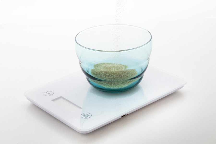 Digitální kuchyňská váha s vážicí plošinou z tvrzeného skla a vestavěnou dobíjecí baterií přes USB (200 mAh). Kapacita: 5 kg, stupnice 1 g, jednotky měření: g/oz. S indikátorem vody/mléka ml. Včetně nabíjecího kabelu USB.