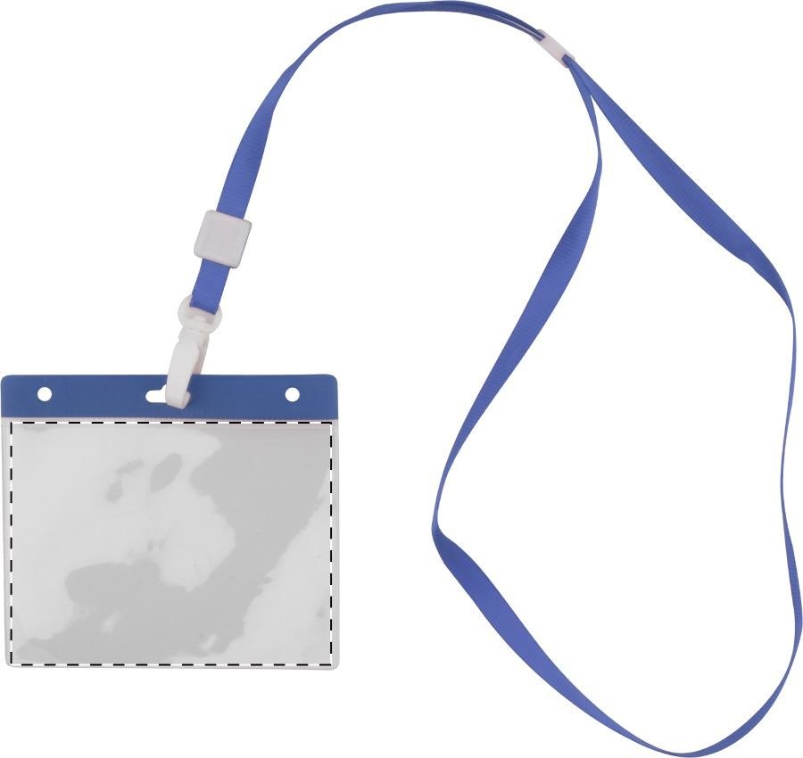 Lanyard s plastovou karabinkou a PVC držákem, polyester.