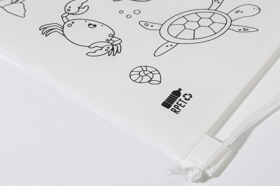 Vak se stahovací šňůrkou pro děti z netkané RPET tkaniny s 5 voskovkami na vybarvení.