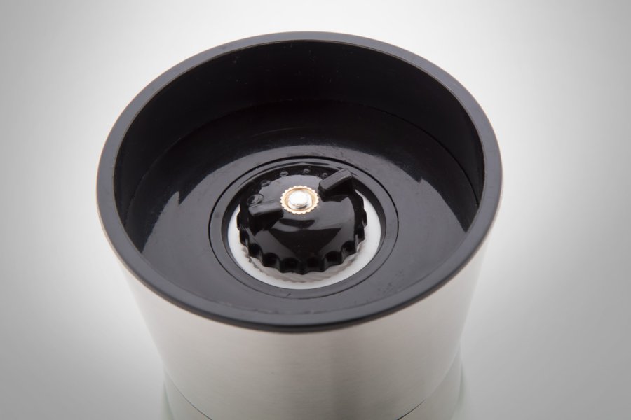 Nerezový ruční mlýnek na sůl a pepř s keramickým jádrem mlýnku a skleněnou nádobou, 180 ml.