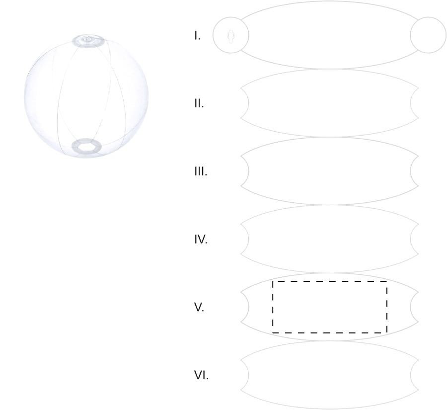 Průhledný plážový míč se 6 panely, materiál: PVC. Vyfouklý rozměr: 370 mm