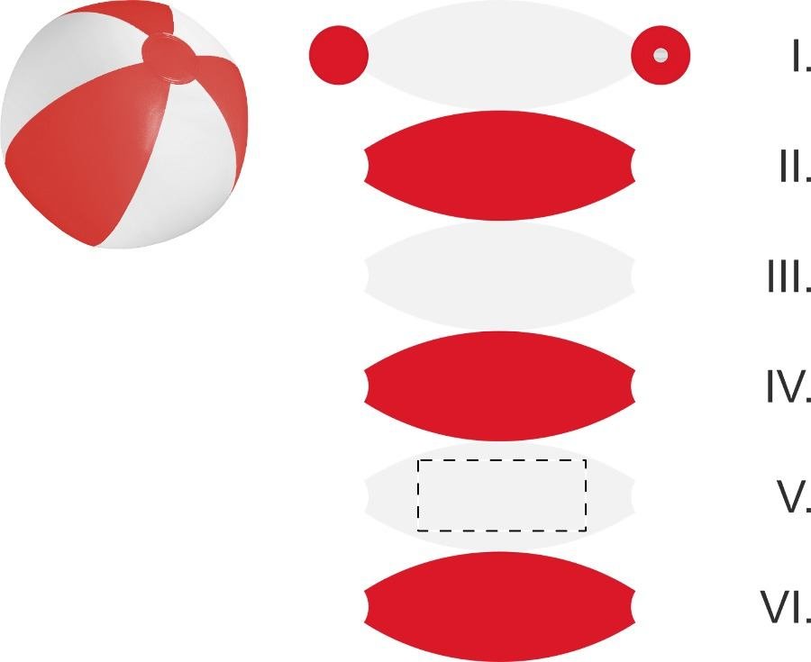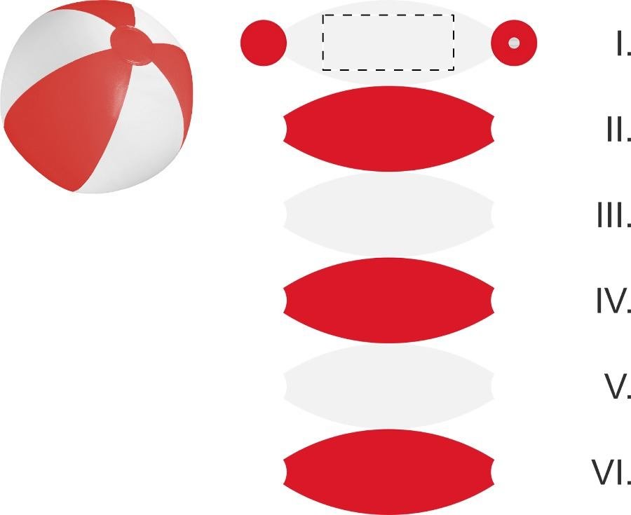 PVC plážový míč, 6 panelů. Délka panelu: 380 mm.