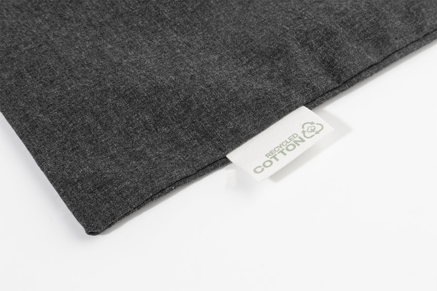 Nákupní taška s dlouhými uchy ze 70 % recyklované bavlny a 30 % RPET polyesteru, 140 g/m². S výraznou etiketou o recyklované bavlně.