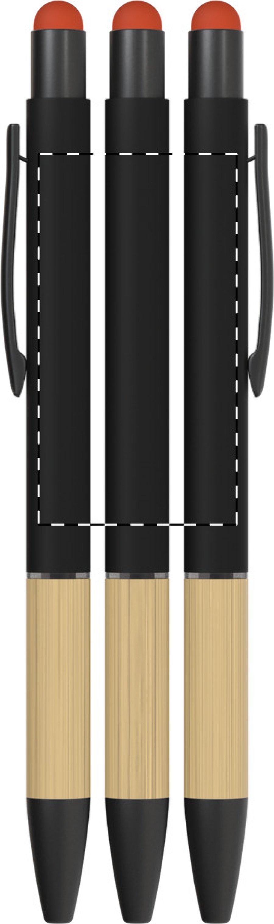 Hliníkové kuličkové a dotykové pero s bambusovým úchopem a pogumovaným povrchem. Se speciální vrstvou pro zrcadlové gravírování odpovídající barvě stylusu. S modrou náplní.