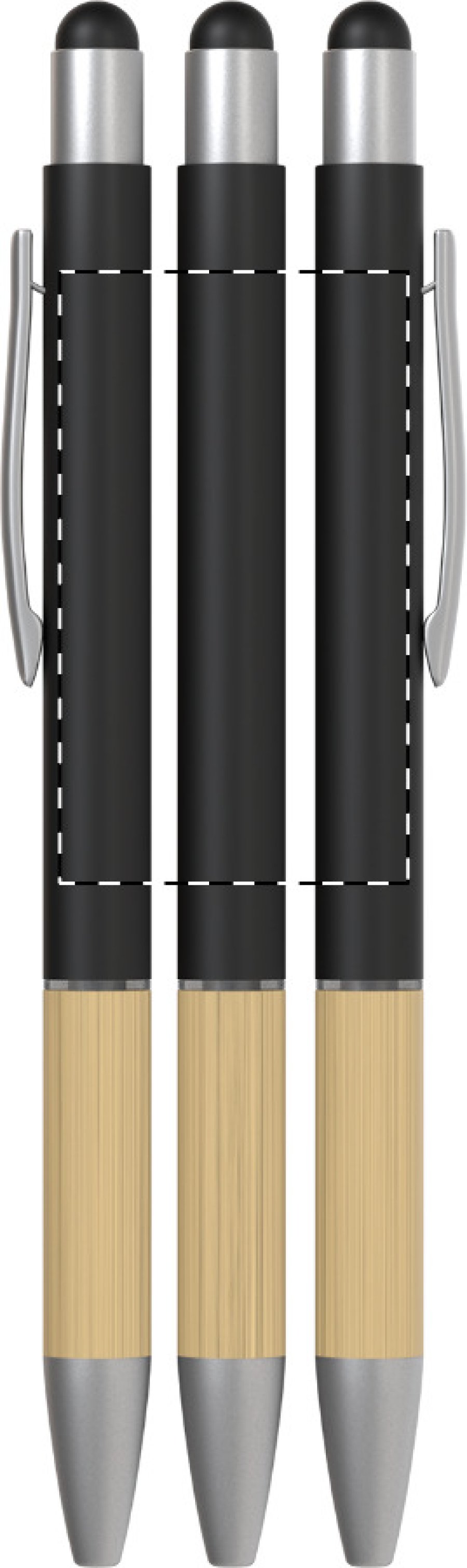 Hliníkové kuličkové a dotykové pero s bambusovým uchopením a matným povrchem. S modrou náplní.