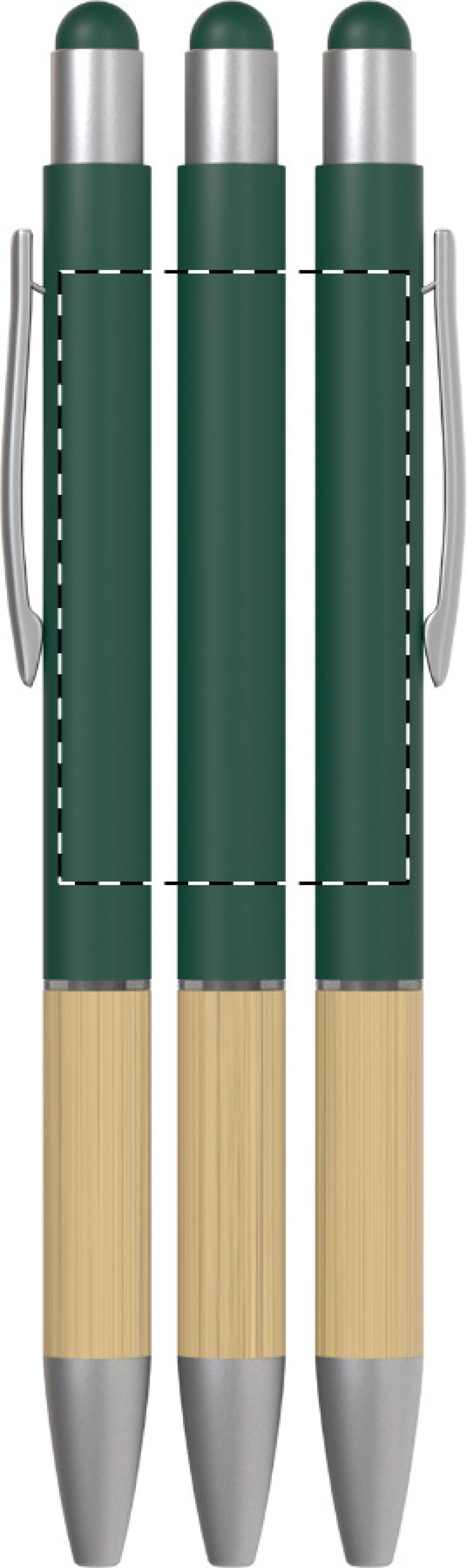 Hliníkové kuličkové a dotykové pero s bambusovým uchopením a matným povrchem. S modrou náplní.
