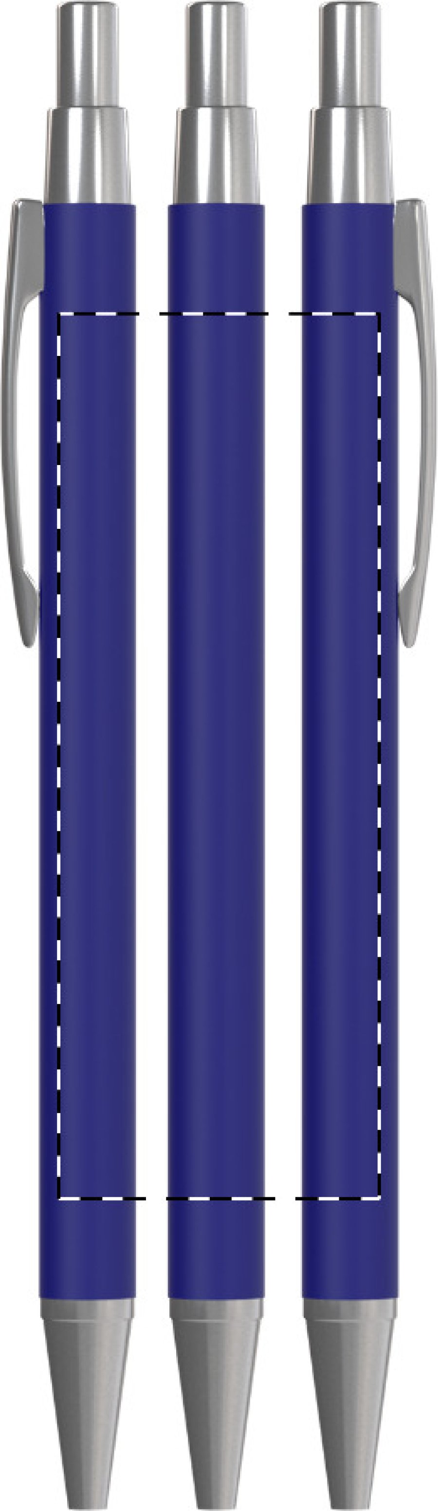 Hliníkové kuličkové pero s pogumovanou úpravou a modrou náplní. Speciální povrch pro zrcadlový laser.