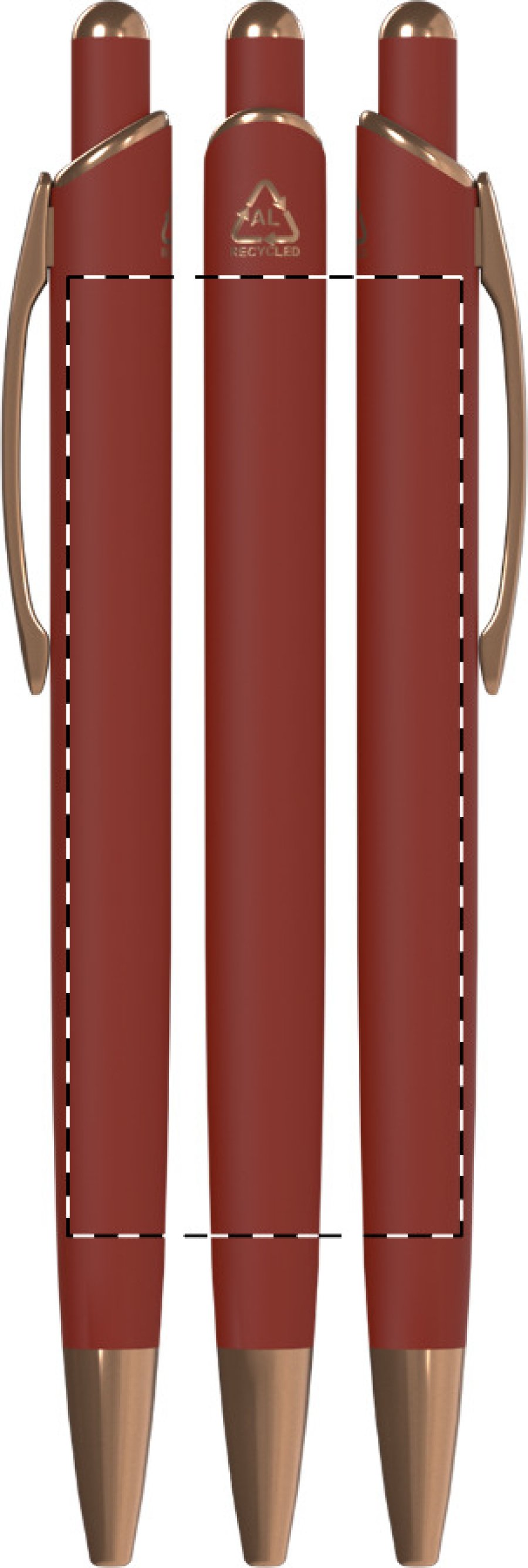 Kuličkové pero z recyklovaného hliníku s pogumovaným povrchem a detaily z růžového zlata. Se speciální povrchovou úpravou pro zrcadlové laserové gravírování v barvě růžového zlata. S modrou náplní.