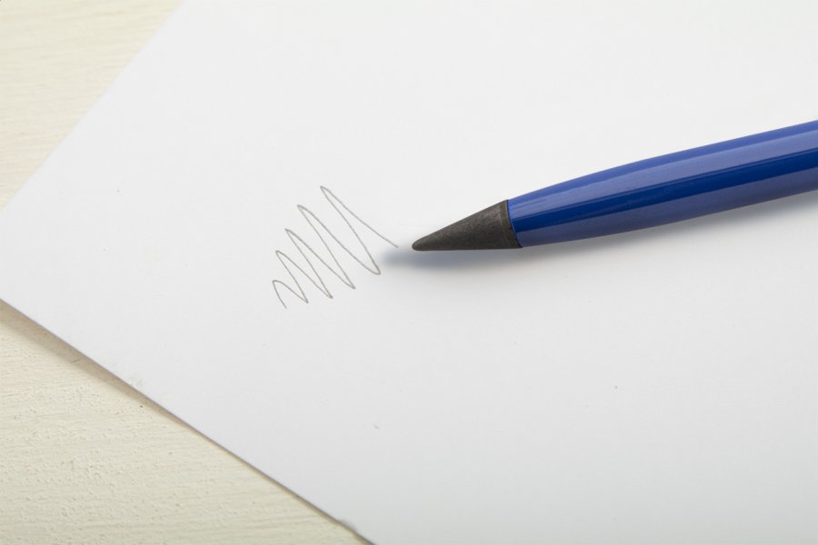 Otočné kuličkové pero 2v1 z recyklovaného hliníku a pero bez inkoustu. S modrou náplní a špičkou z kovové slitiny, která oxiduje papír. Toto pero píše podobně jako tužka a navíc je stíratelné.