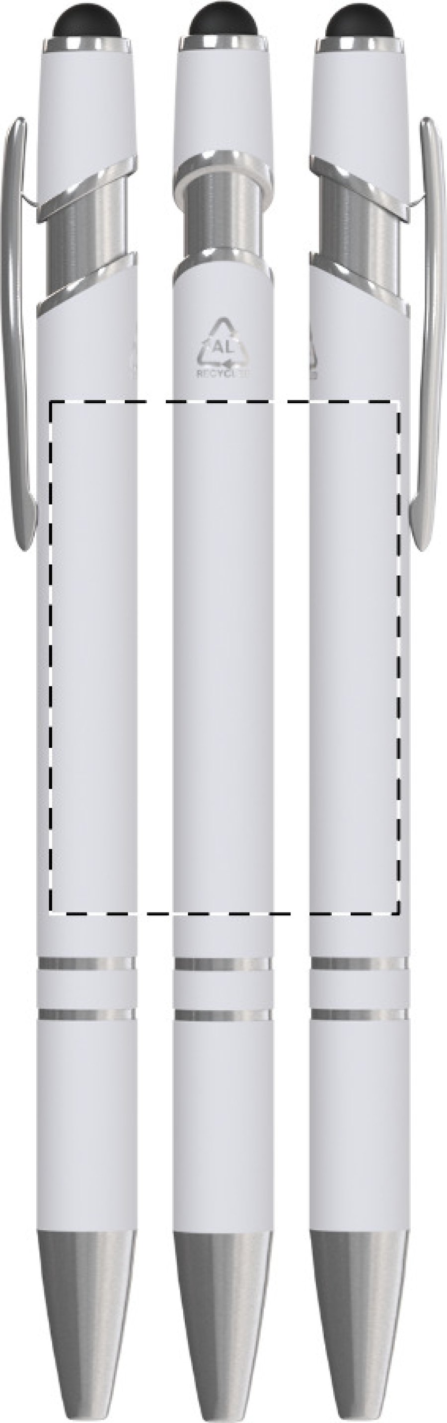 Kuličkové pero a pero pro dotykovou obrazovku z recyklovaného hliníku s pogumovaným tělem a chromovanými detaily. S modrou náplní.