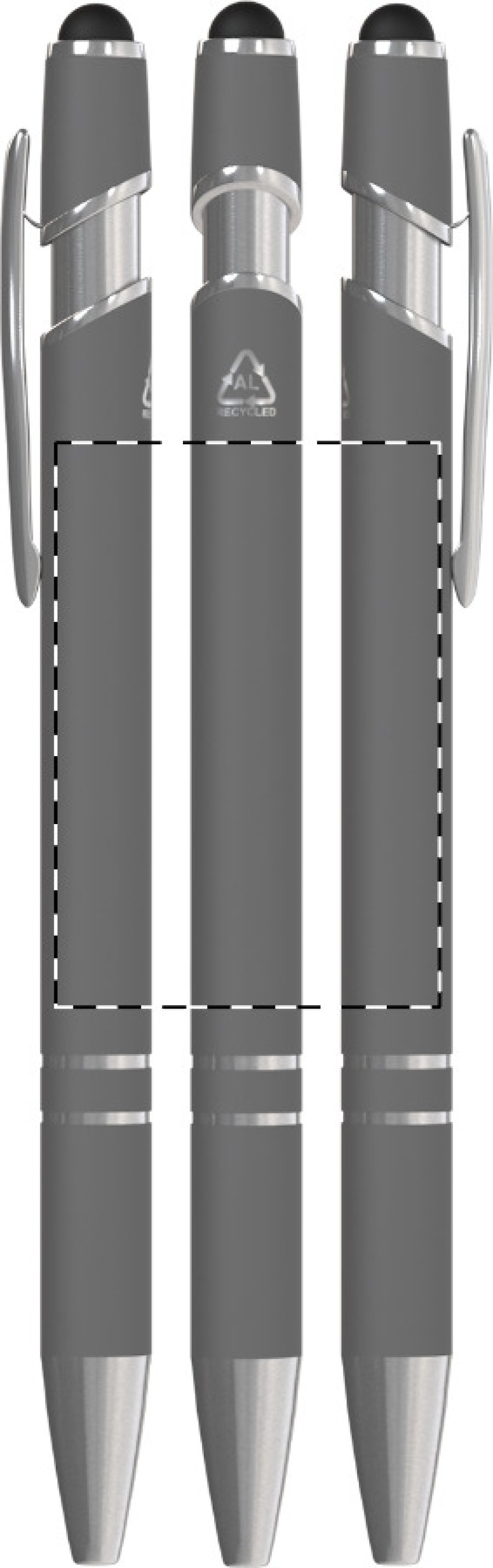 Kuličkové pero a pero pro dotykovou obrazovku z recyklovaného hliníku s pogumovaným tělem a chromovanými detaily. S modrou náplní.