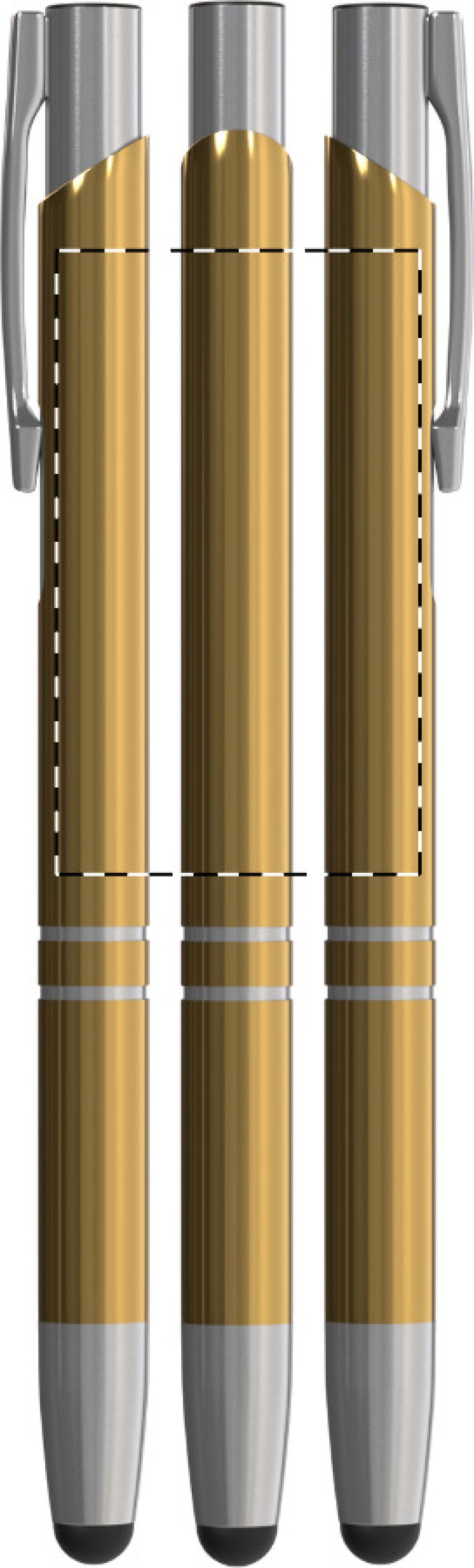 Hliníkové kuličkové pero s dotykovým koncem a modrou náplní.