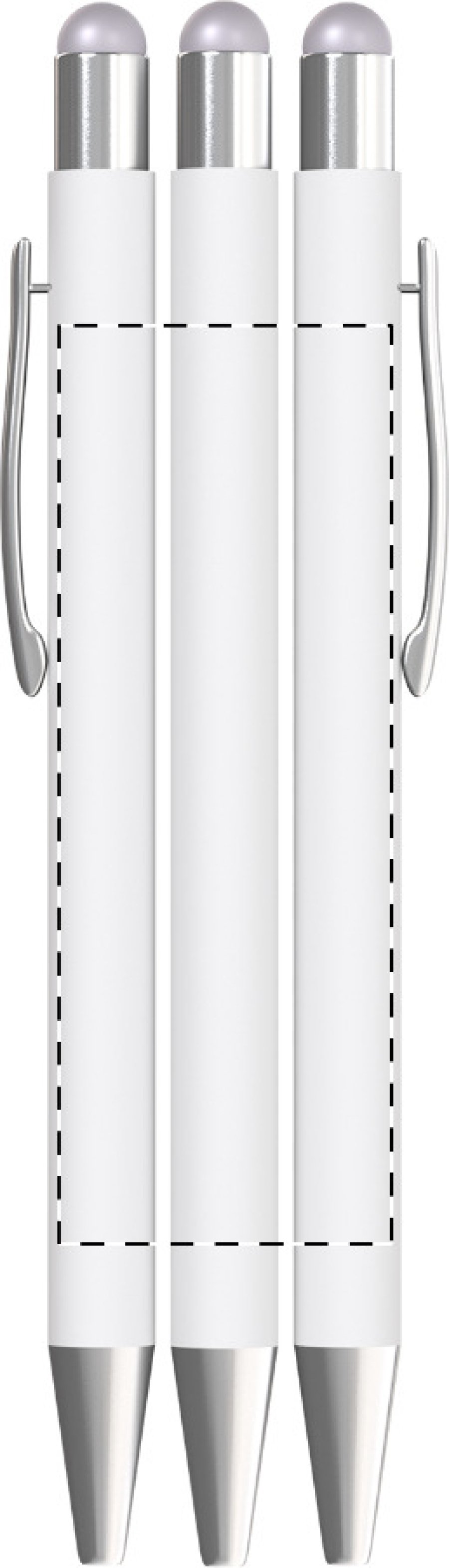 Hliníkové kuličkové a dotykové pero s pogumovanou úpravou a speciálním povrchem pro zrcadlový laser v barvě stylusu, s modrou náplní.