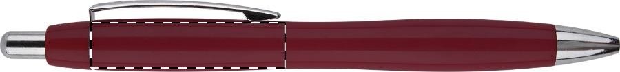 Plastové kuličkové pero s pevným, barevným tělem, kovovým klipem s třpytivým chromovým vzhledem. Do dává se s modrou náplní.
