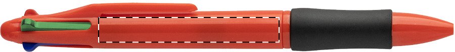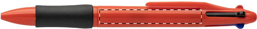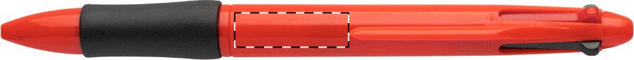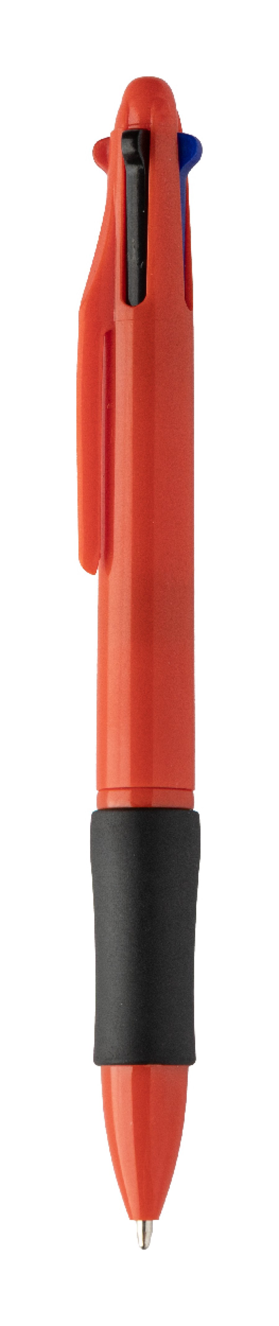 Vícebarevné kuličkové pero z recyklovaného ABS materiálu s gumovým úchopem. S černou, modrou, červenou a zelenou náplní.