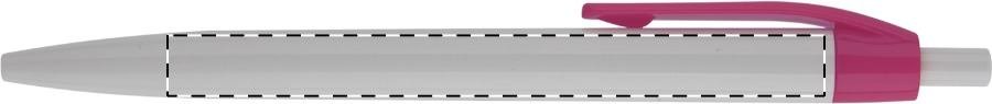 Plastové kuličkové pero s bílým tělem a barevným klipem, s modrou náplní.