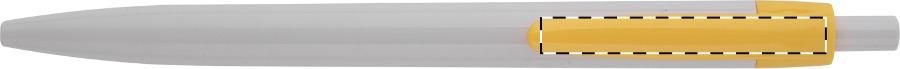 Plastové kuličkové pero s bílým tělem a barevným klipem, s modrou náplní.