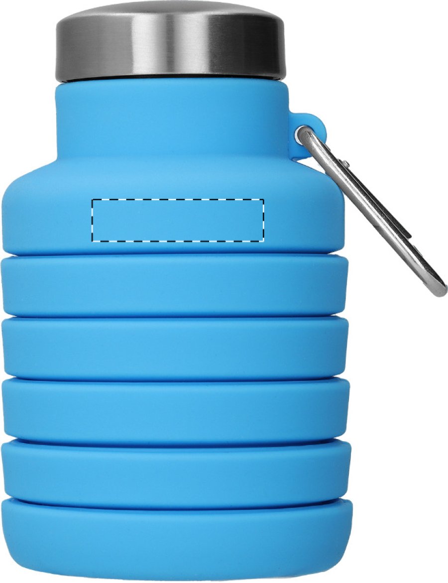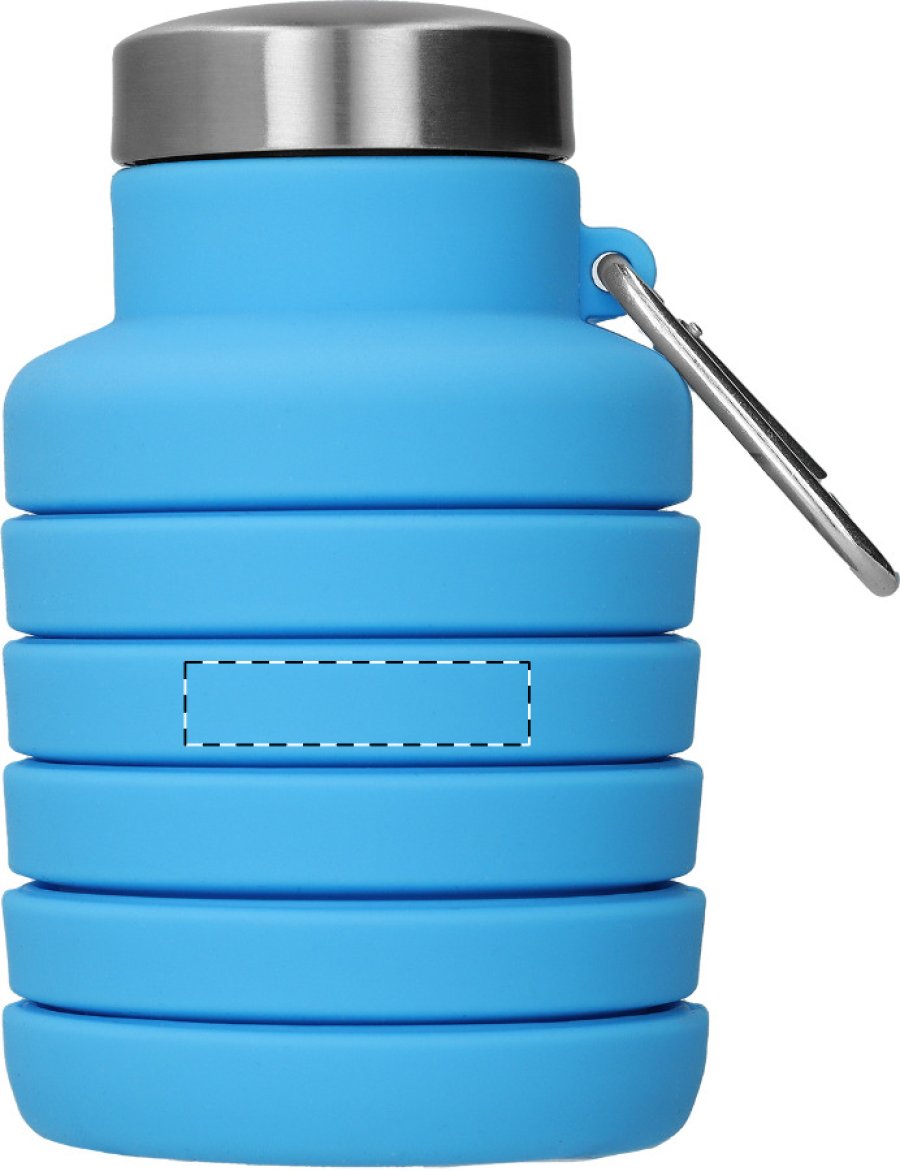 Skládací silikonová láhev s víčkem z nerezové oceli a hliníkovou karabinou. 500 ml