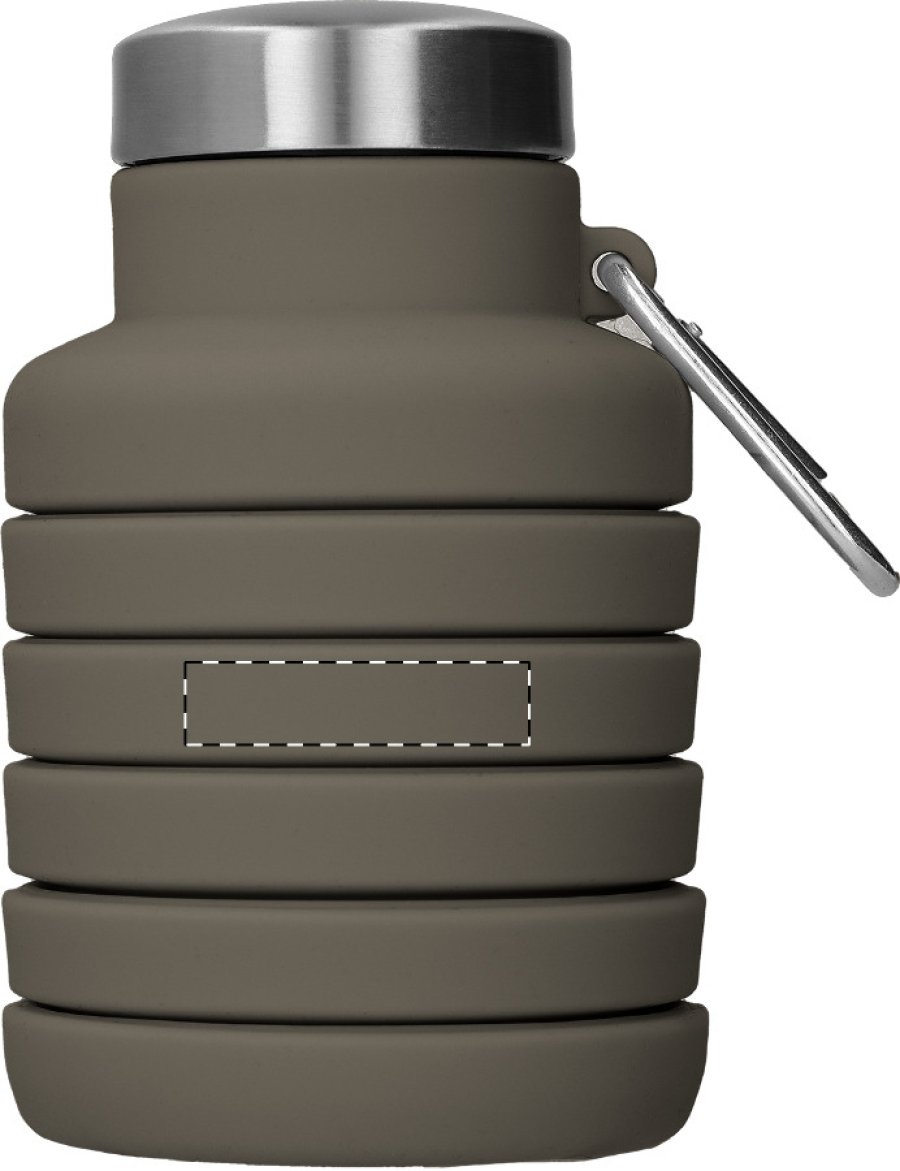 Skládací silikonová láhev s víčkem z nerezové oceli a hliníkovou karabinou. 500 ml