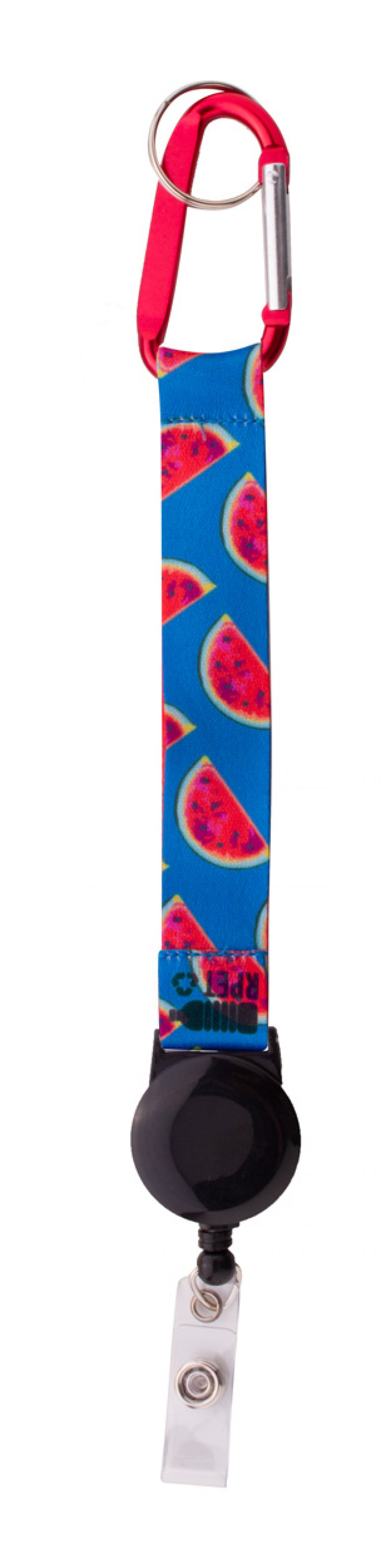 Na zakázku vyrobený RPET polyesterový přívěsek na klíče se sublimační tištěnou grafikou na obou stranách. S vnitřním štítkem RPET, teleskopickým držákem na průkaz, hliníkovou karabinou a kovovým kroužkem na klíče. Cena zahrnuje sublimační tisk, nezahrnuje tiskovou přípravu. Min. mn.: 100 ks.