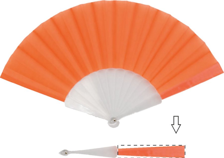 Polyesterový ruční ventilátor s plastovými žebry.