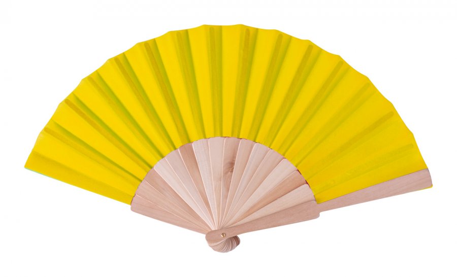 Ruční vějíř z polybavlny s dřevěnými žebry.