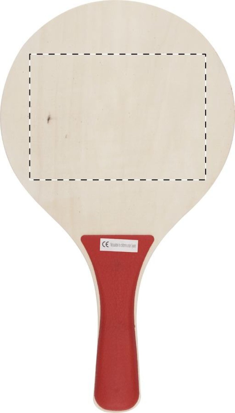 2 rakety a jeden míček, vyrobeno ze dřeva a plastu.
