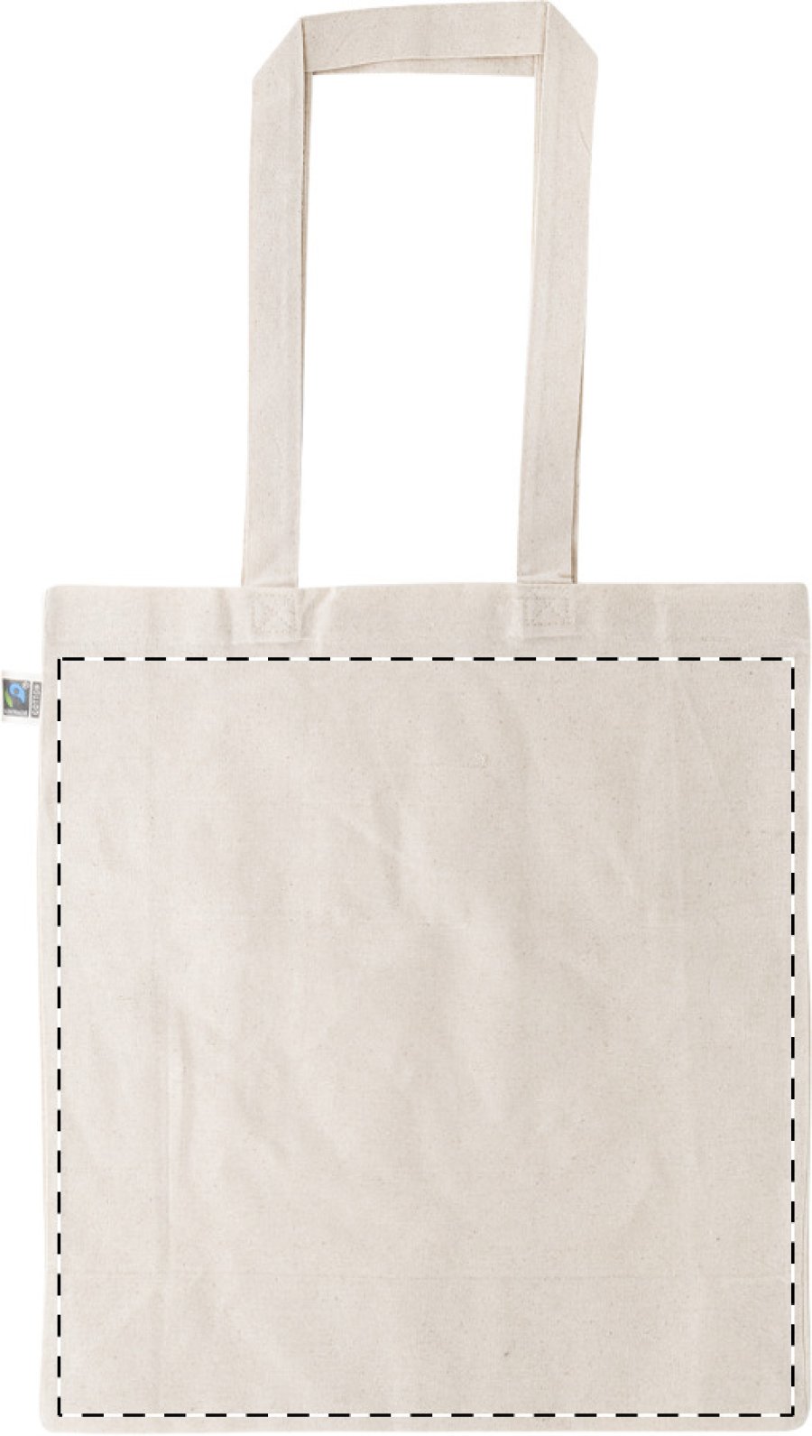 Opakovaně použitelná bavlněná nákupní taška Fairtrade s klínem a dlouhými uchy. 100% fairtradová bavlna, 180 g/m². S výraznou etiketou Fairtrade.