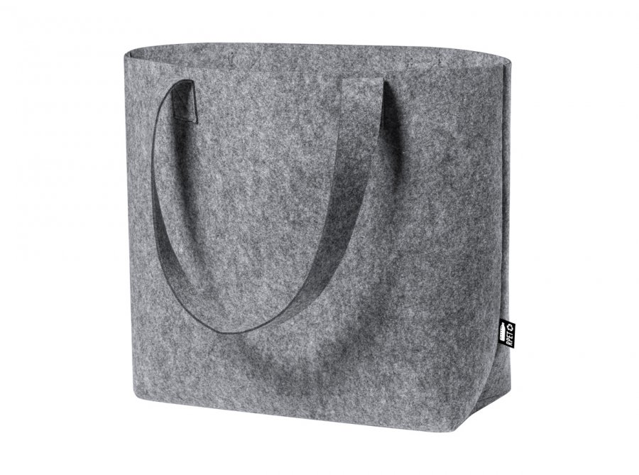 Nákupní taška z RPET plsti s dlouhými uchy a rozšířeným dnem. S výrazným štítkem RPET.