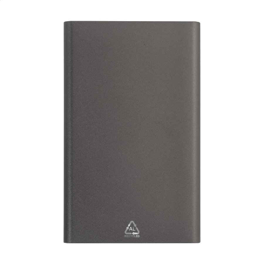 USB power banka v pouzdře z recyklovaného hliníku s 4000 mAh baterií. S 1 portem USB a 1 portem USB-C pro nabíječku. Vstupní port USB-C. Včetně USB nabíjecího kabelu.