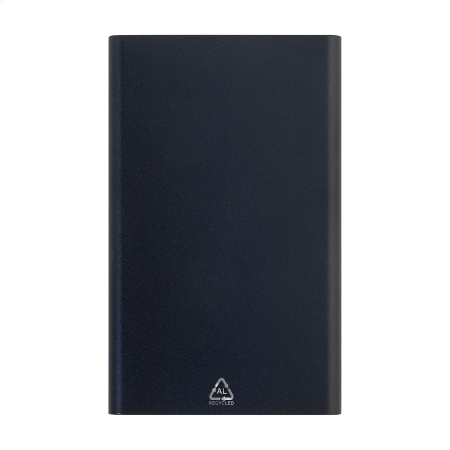 USB power banka v pouzdře z recyklovaného hliníku s 4000 mAh baterií. S 1 portem USB a 1 portem USB-C pro nabíječku. Vstupní port USB-C. Včetně USB nabíjecího kabelu.