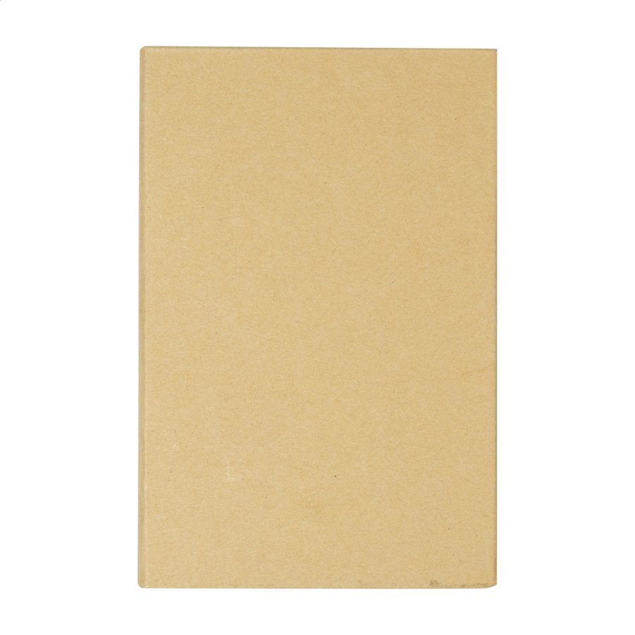 Samolepicí blok z recyklovaného papíru se 100 žlutými papírky na poznámky a 500 záložkami (v 5 barvách). Včetně kalendáře na 4 roky na vnitřní straně víka.