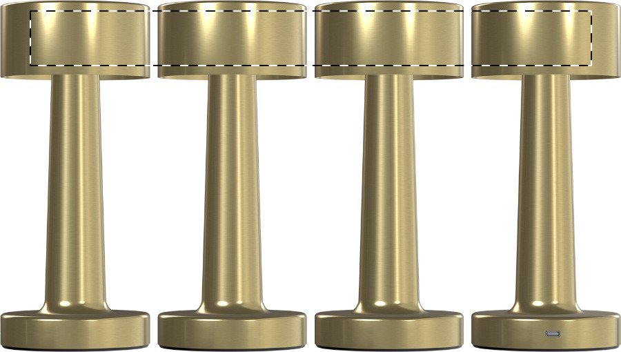 Zlatá kovová stolní lampa s 24 LED diodami, nastavitelným jasem a dobíjecí baterií přes USB s kapacitou 800 mAh. S teplým, přirozeným a studeným světlem. Včetně nabíjecího kabelu USB.