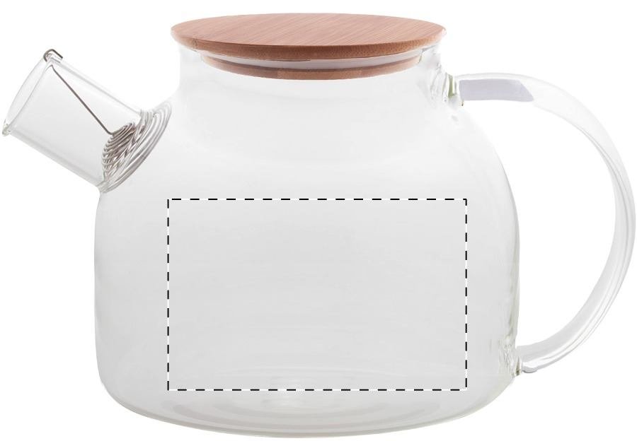 Čajová konvice z borosilikátového skla s bambusovým víčkem a nerezovým sítkem na čaj v kraftové papírové krabičce. 1000 ml.