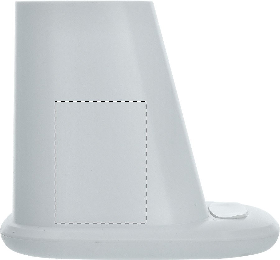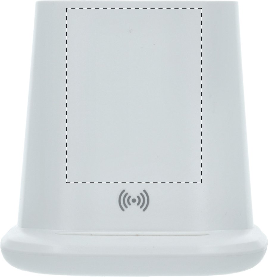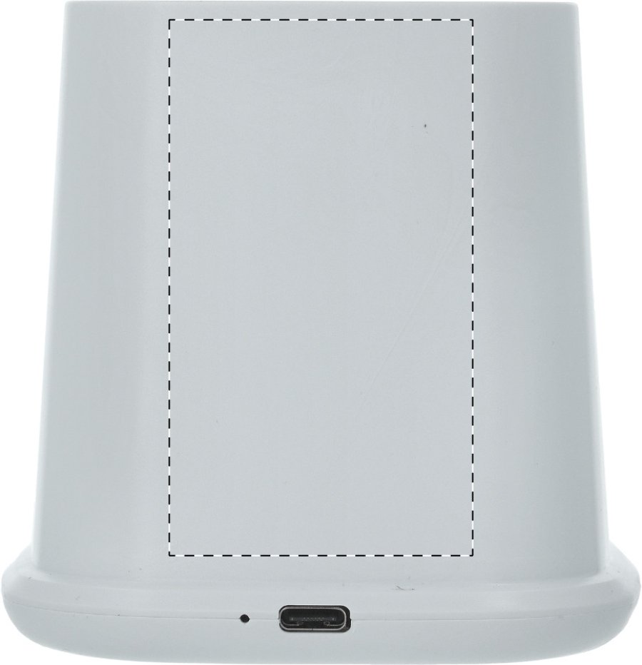 Multifunkční stojánek na pero z recyklovaného ABS plastu s držákem na mobil, vestavěnou bezdrátovou rychlonabíječkou (10 W), 1 USB a 1 USB-C portem pro nabíjení. Včetně USB kabelu pro nabíjení.
