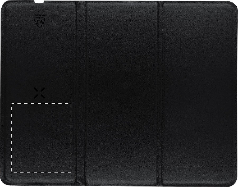 Skládací podložka pod myš z recyklované PU kůže s vestavěnou bezdrátovou nabíječkou (10W) a funkcí držáku mobilního telefonu. Se sametovou protiskluzovou základnou. Včetně USB nabíjecího kabelu.