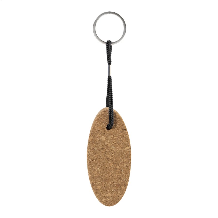 Plovoucí přívěsek na klíče z přírodního korku s polyesterovou šňůrkou a kovovým kroužkem.