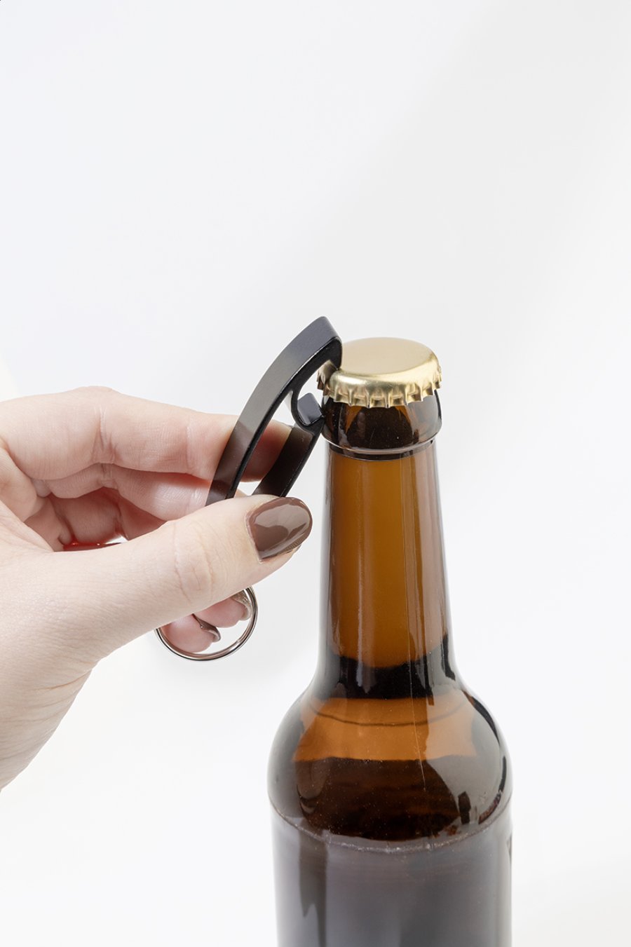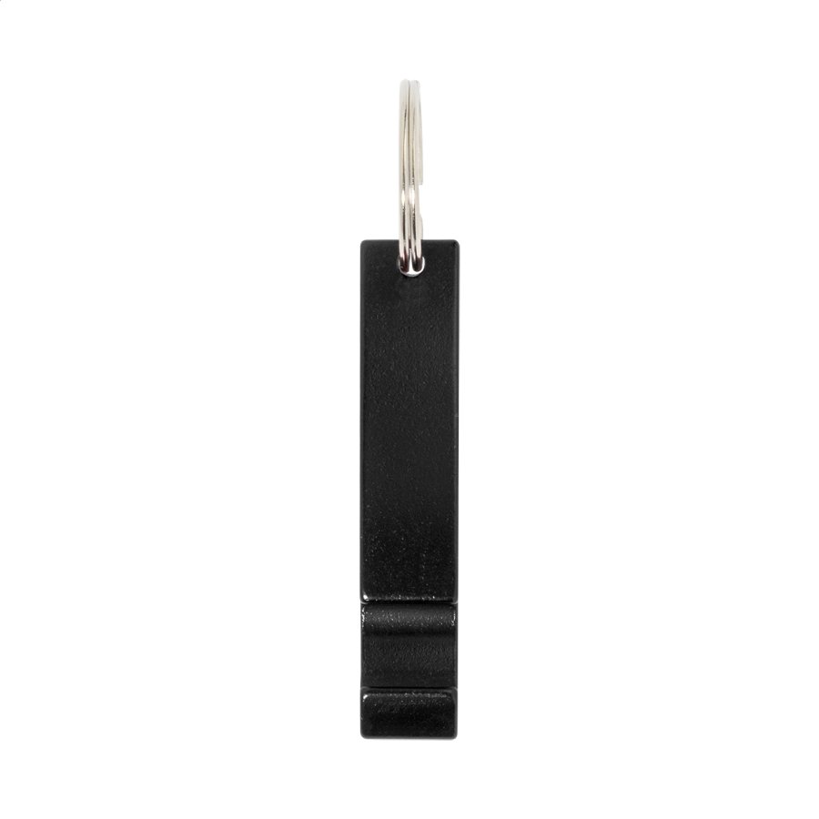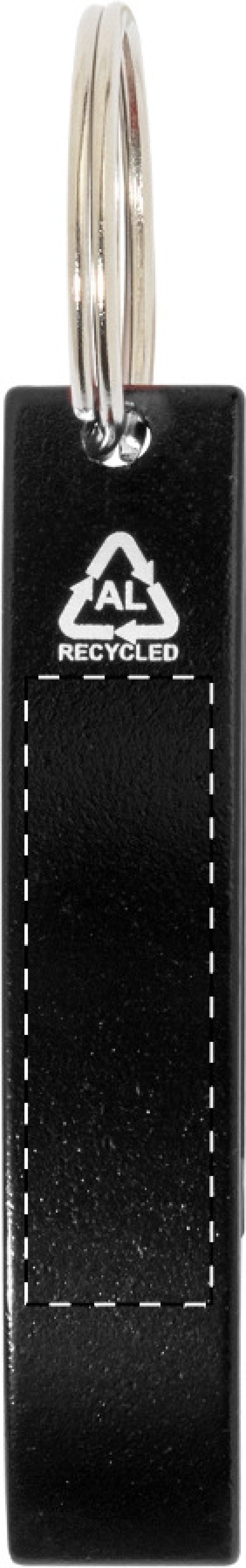 Otvírák na lahve z recyklovaného hliníku s kovovým kroužkem na klíče.