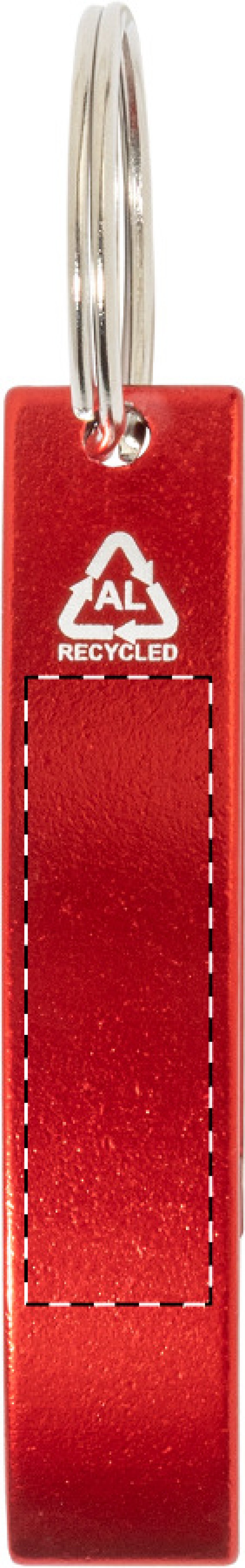 Otvírák na lahve z recyklovaného hliníku s kovovým kroužkem na klíče.