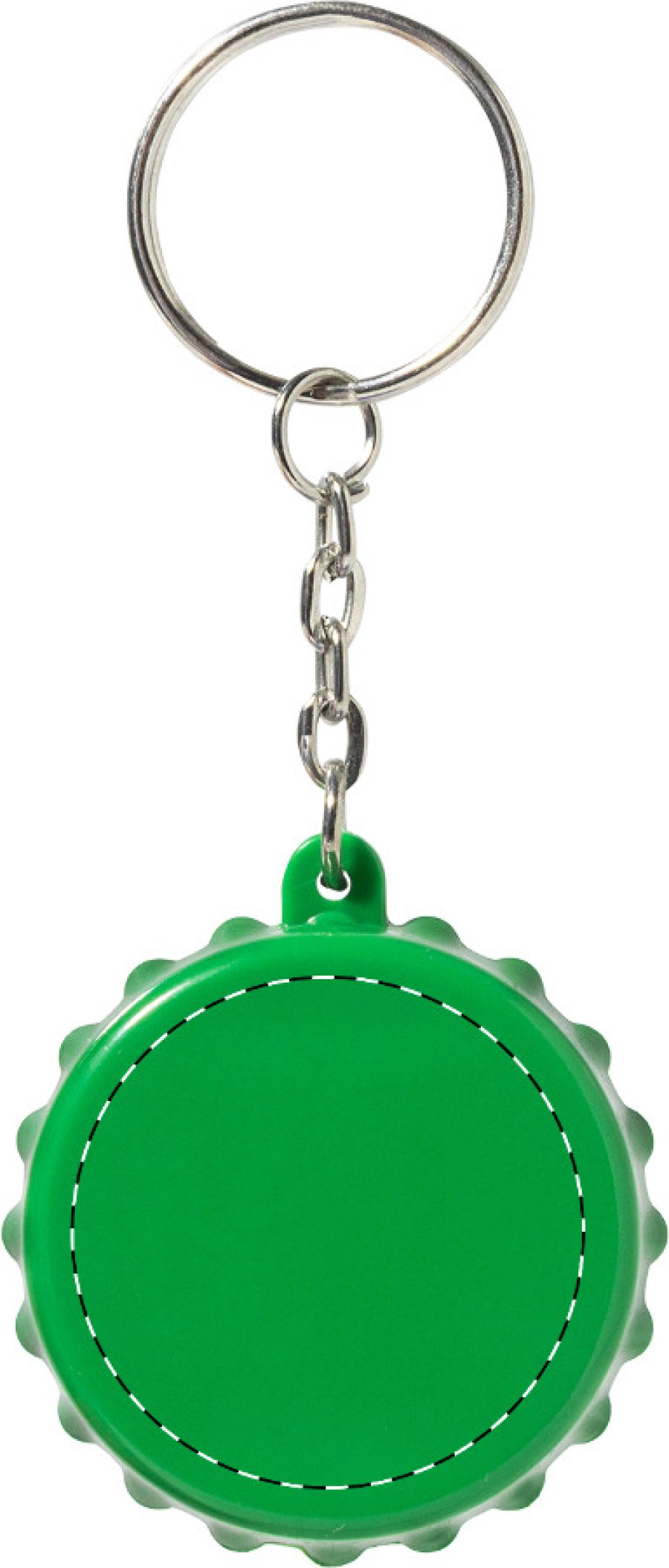 Přívěsek na klíče ve tvaru víčka z recyklovaného ABS plastu s otvírákem.