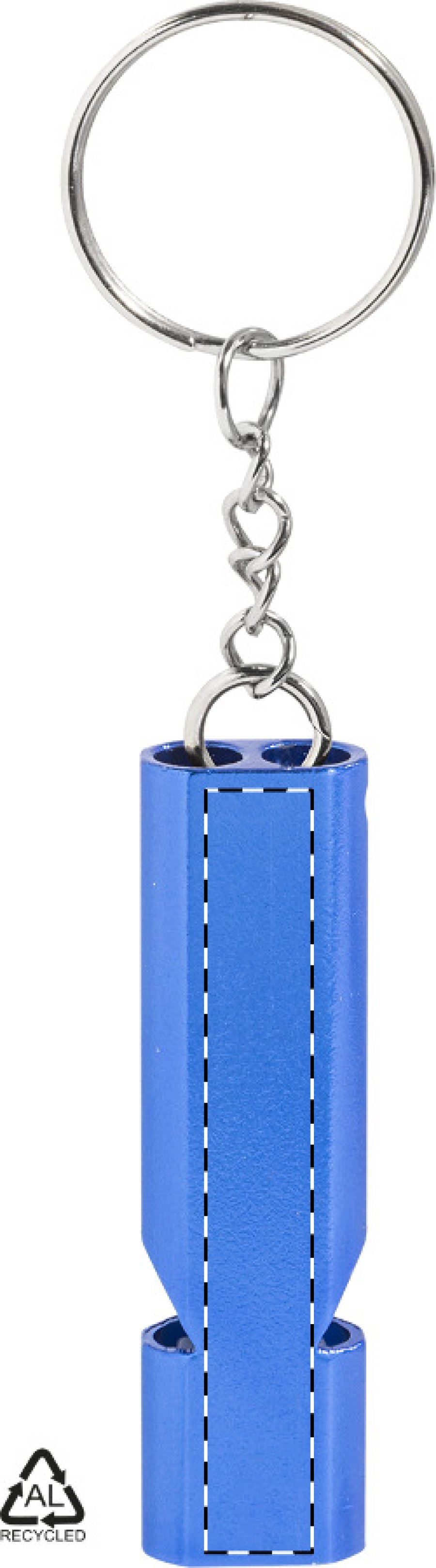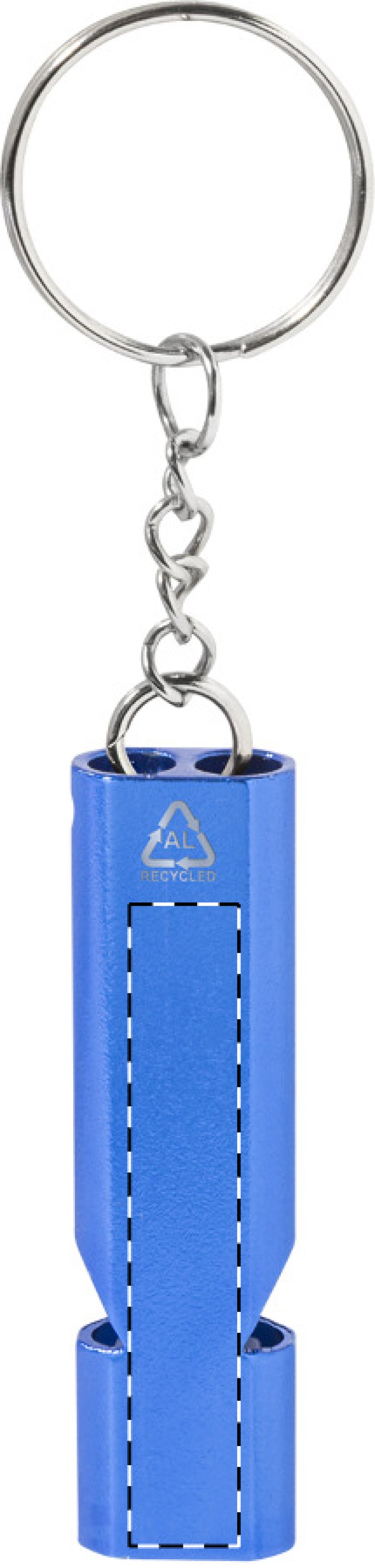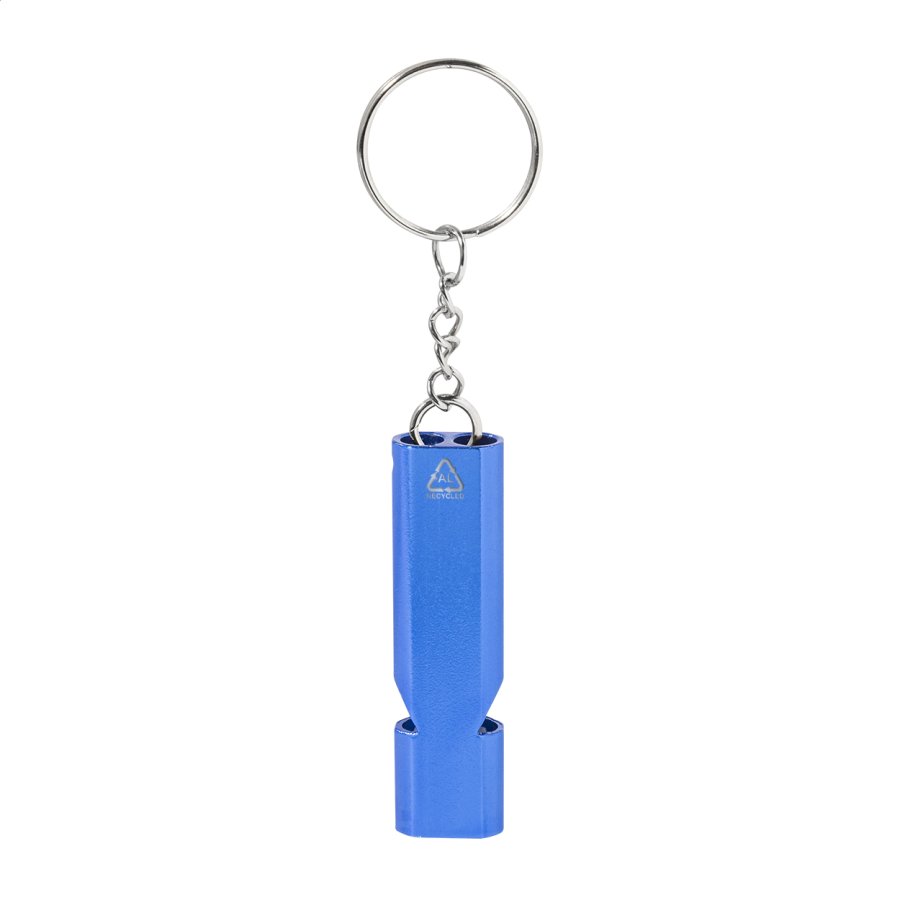 Píšťalka z recyklovaného hliníku s kovovým kroužkem na klíče.
